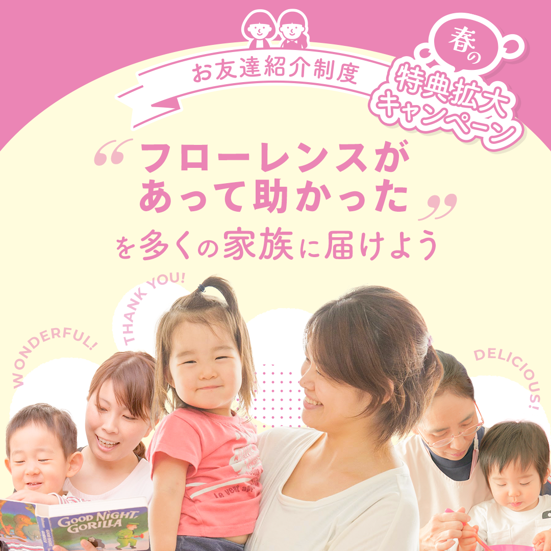 (既にフローレンスの病児保育に入会されているお友達、そのごきょうだいの紹介や、ベーシックプラン以外でのご入会は対象外となります。)