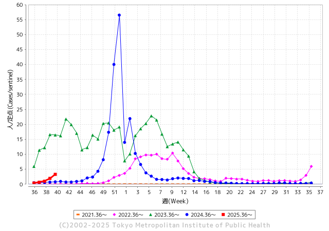 2025年10月現在、既に例年より前倒し流行が始まっており、過去20年で2番目の早さの流行入りとされています。