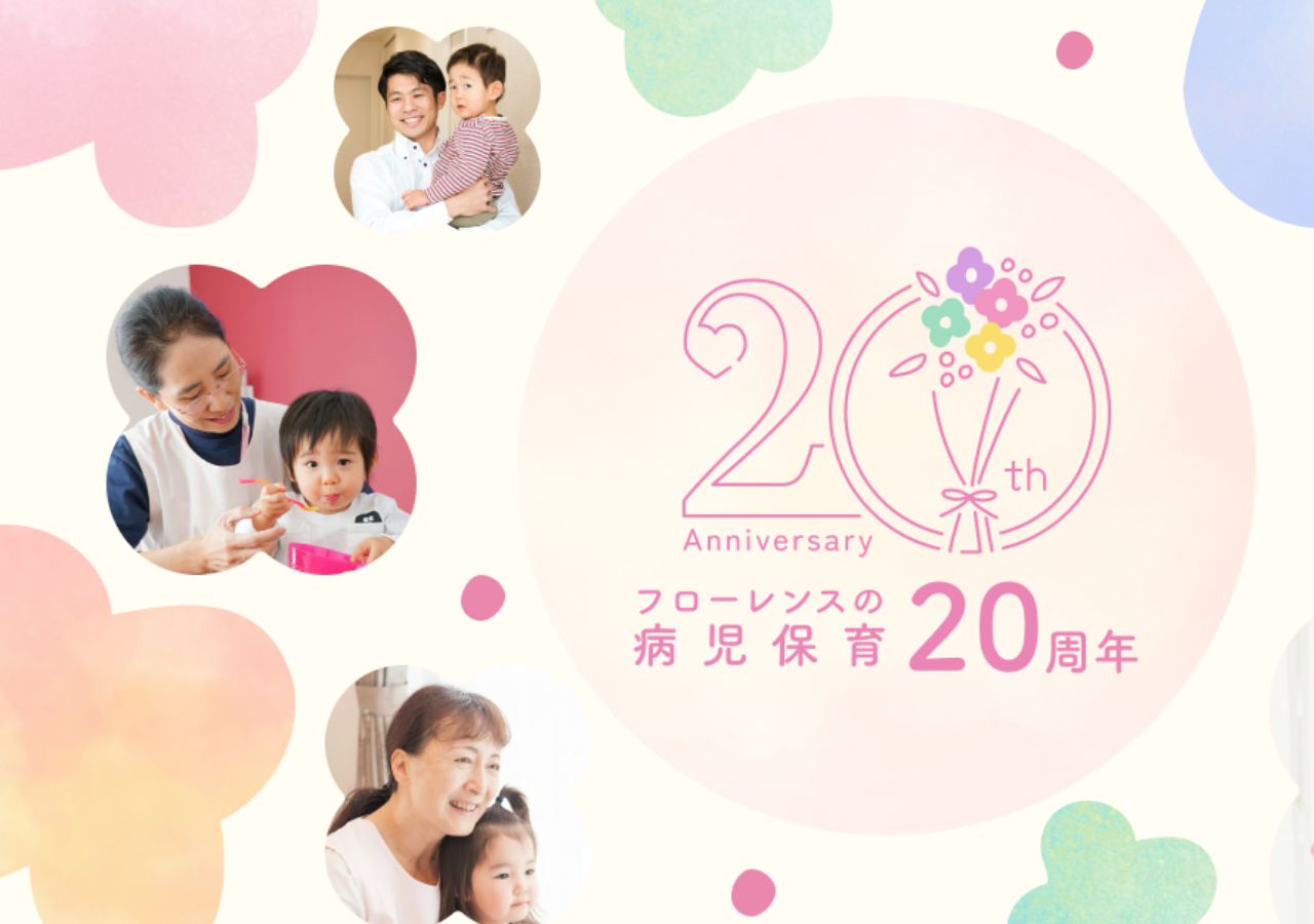 おかげさまでフローレンスの訪問型病児保育は、20周年を迎えることができました。20年前、「こどもが熱を出して看病のために仕事を休んだら解雇された」という声をきっかけに始まったこの事業は、多くの親子、現場スタッフ、応援してくださる寄付者の皆さんとともに歩みながらここまで続いてきました。